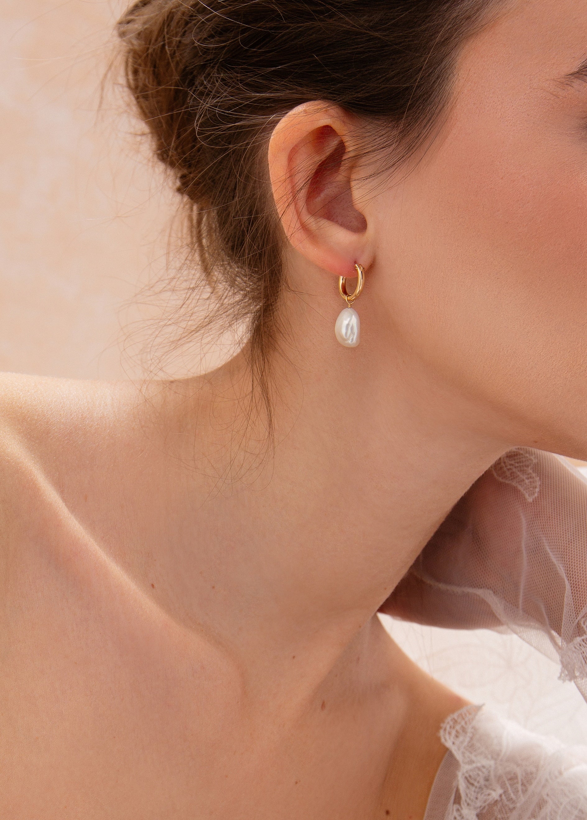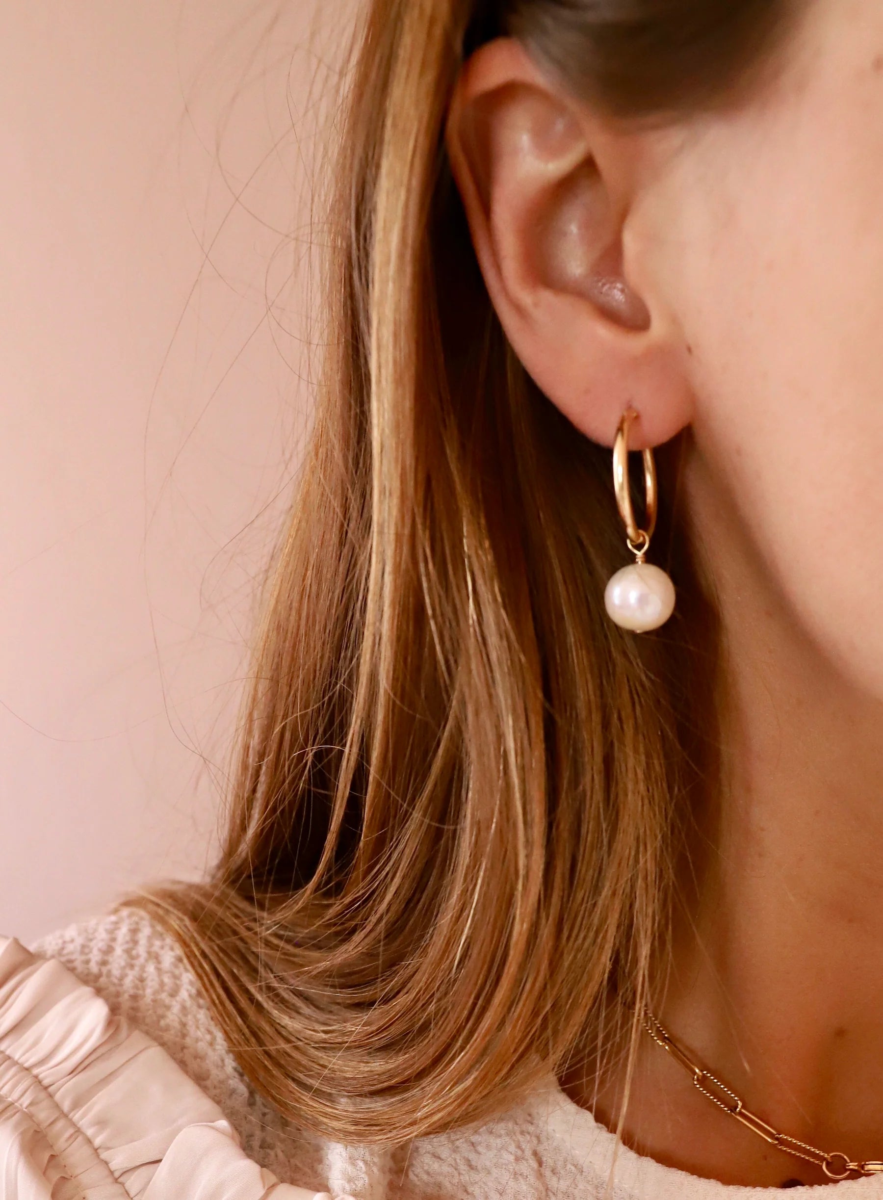 Dangle CZ Ball Flat Back Earring | 14K |Single