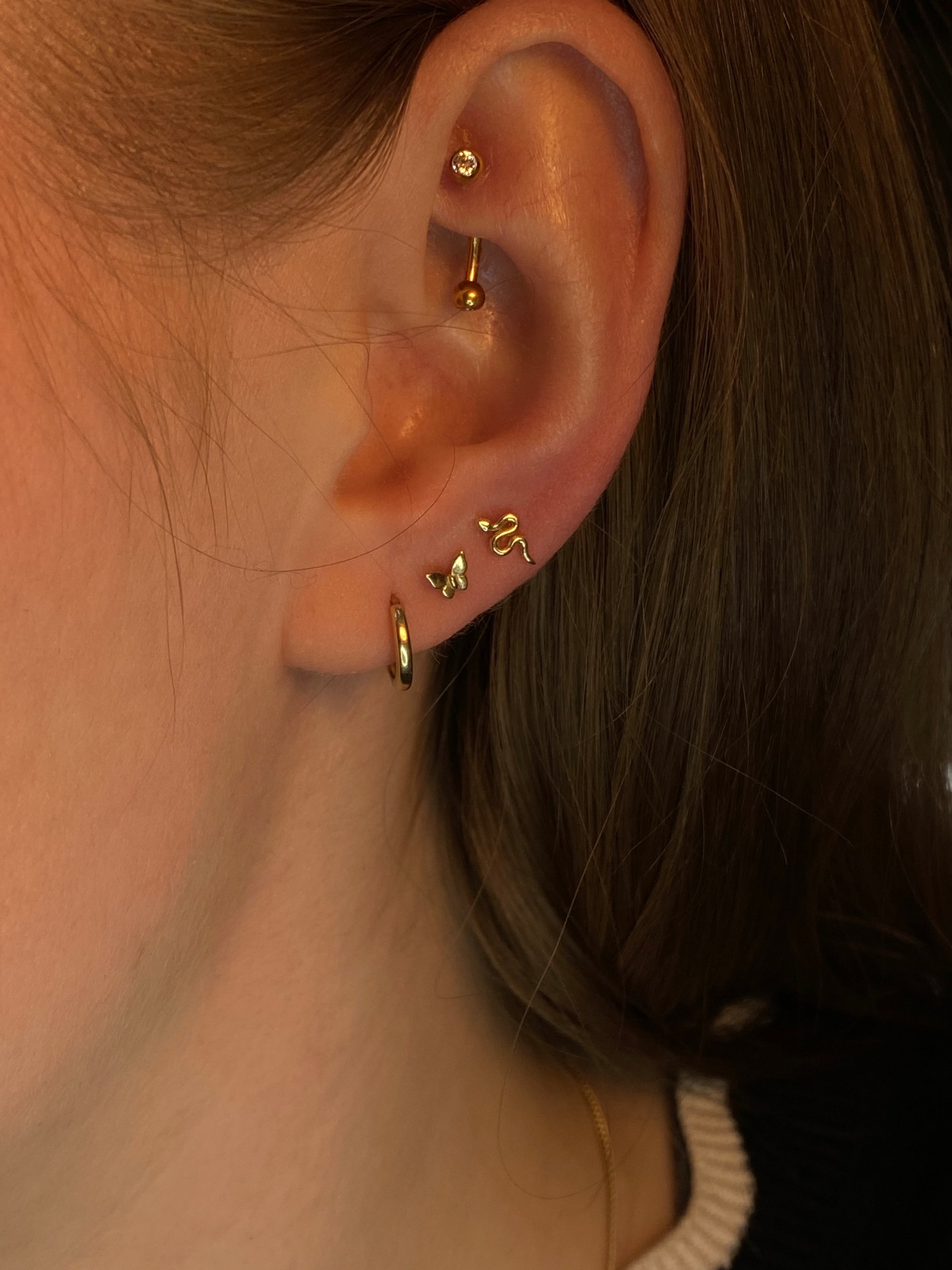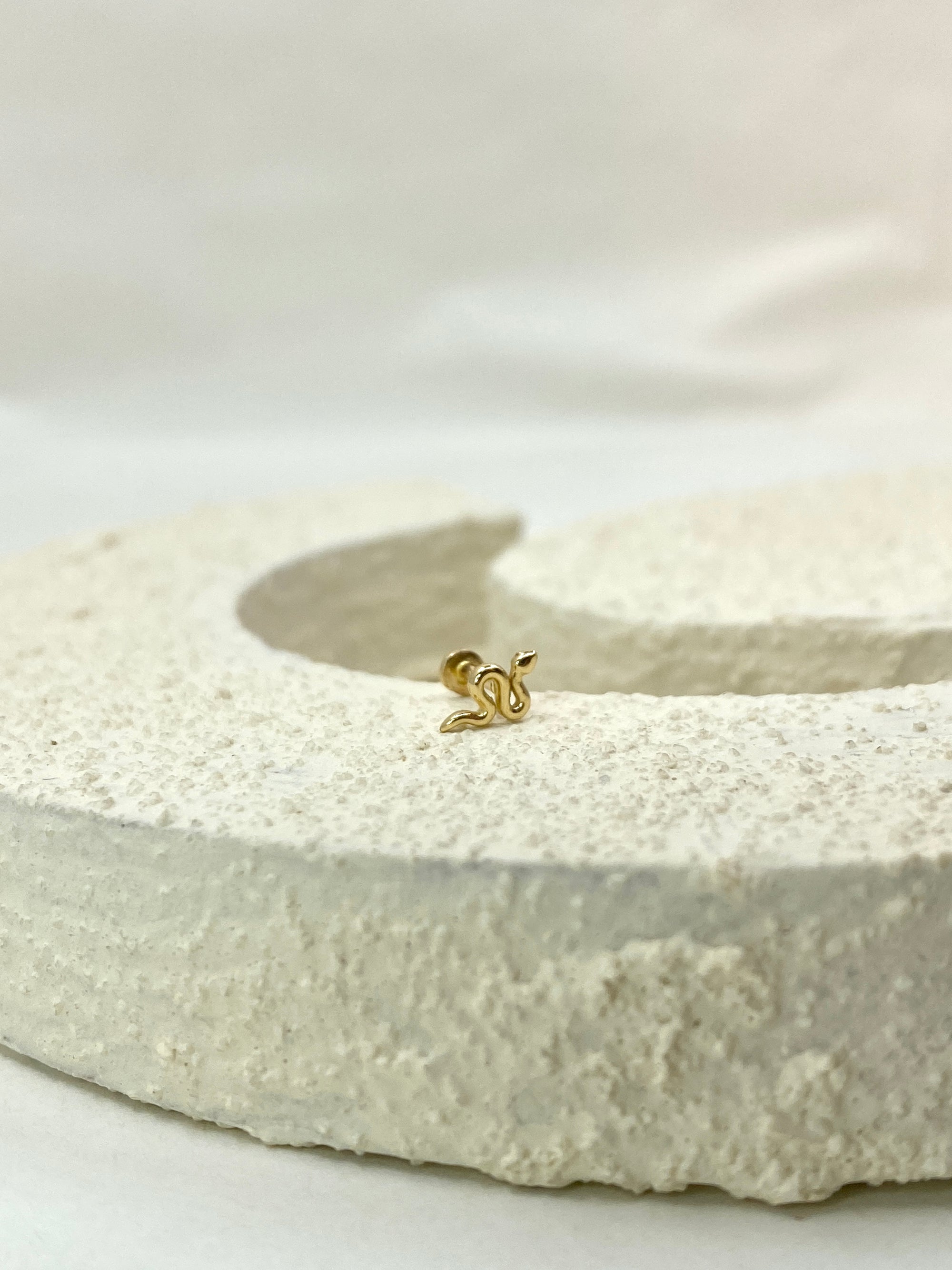 Tiny Snake Flat Back Earring | 14K | Single