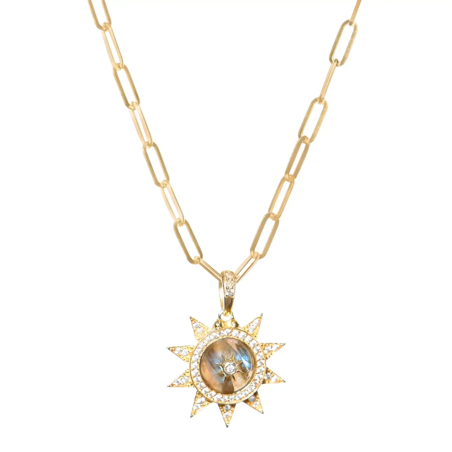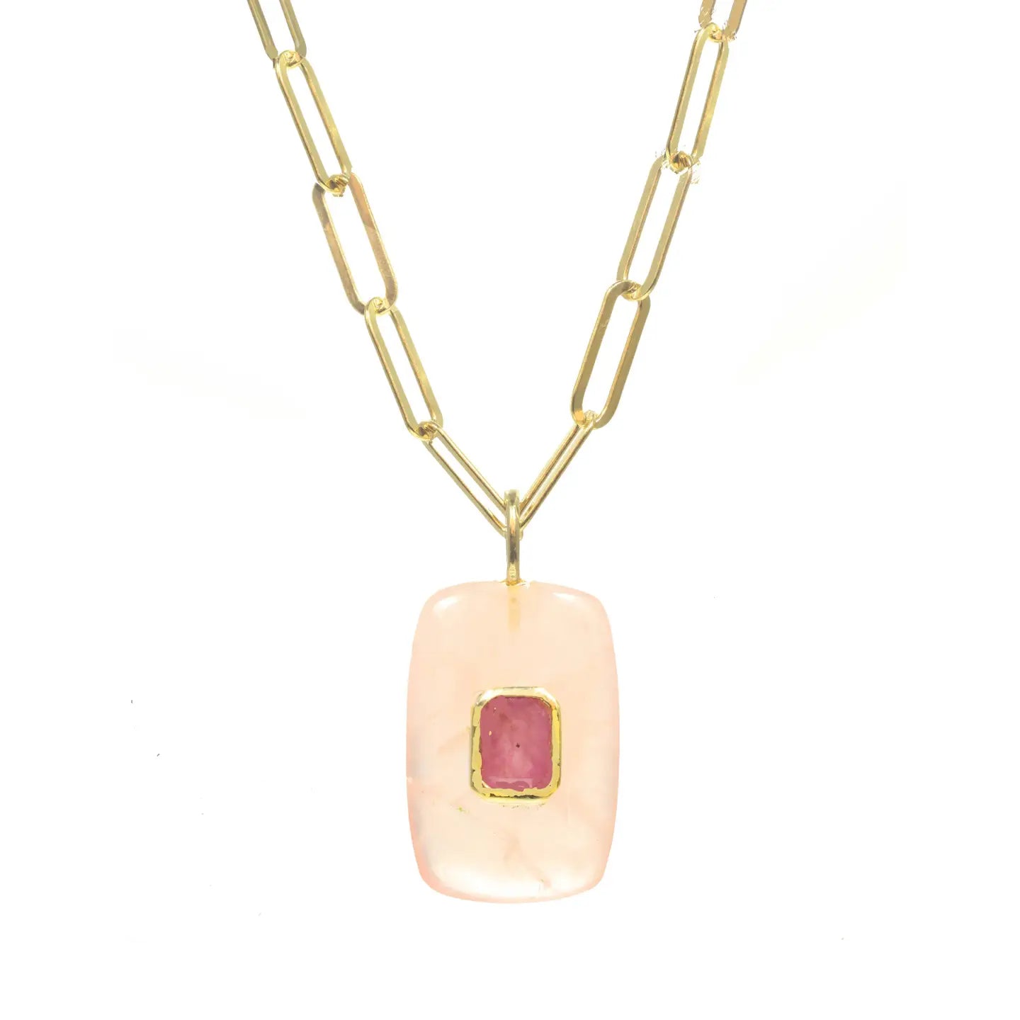 Isabel Paperclip Chain Heart Necklace | Pink Opal