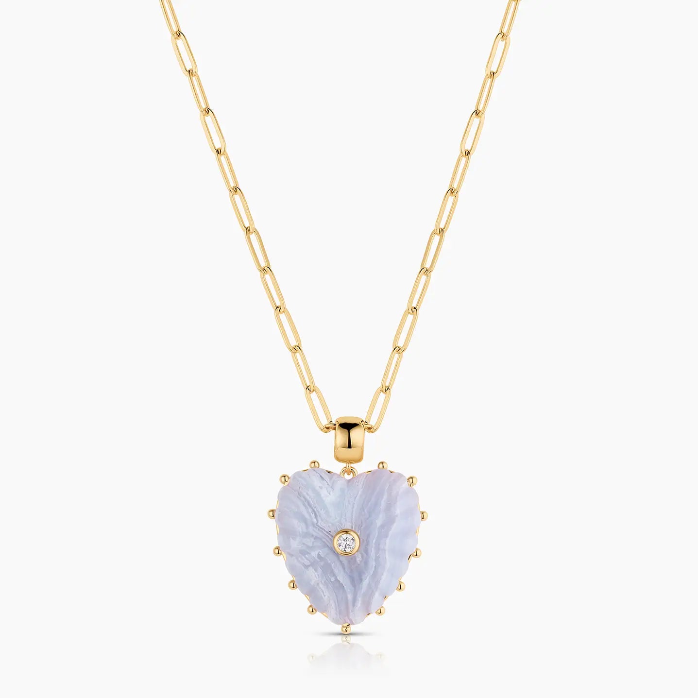 Isabel Paperclip Chain Heart Necklace | Blue Lace