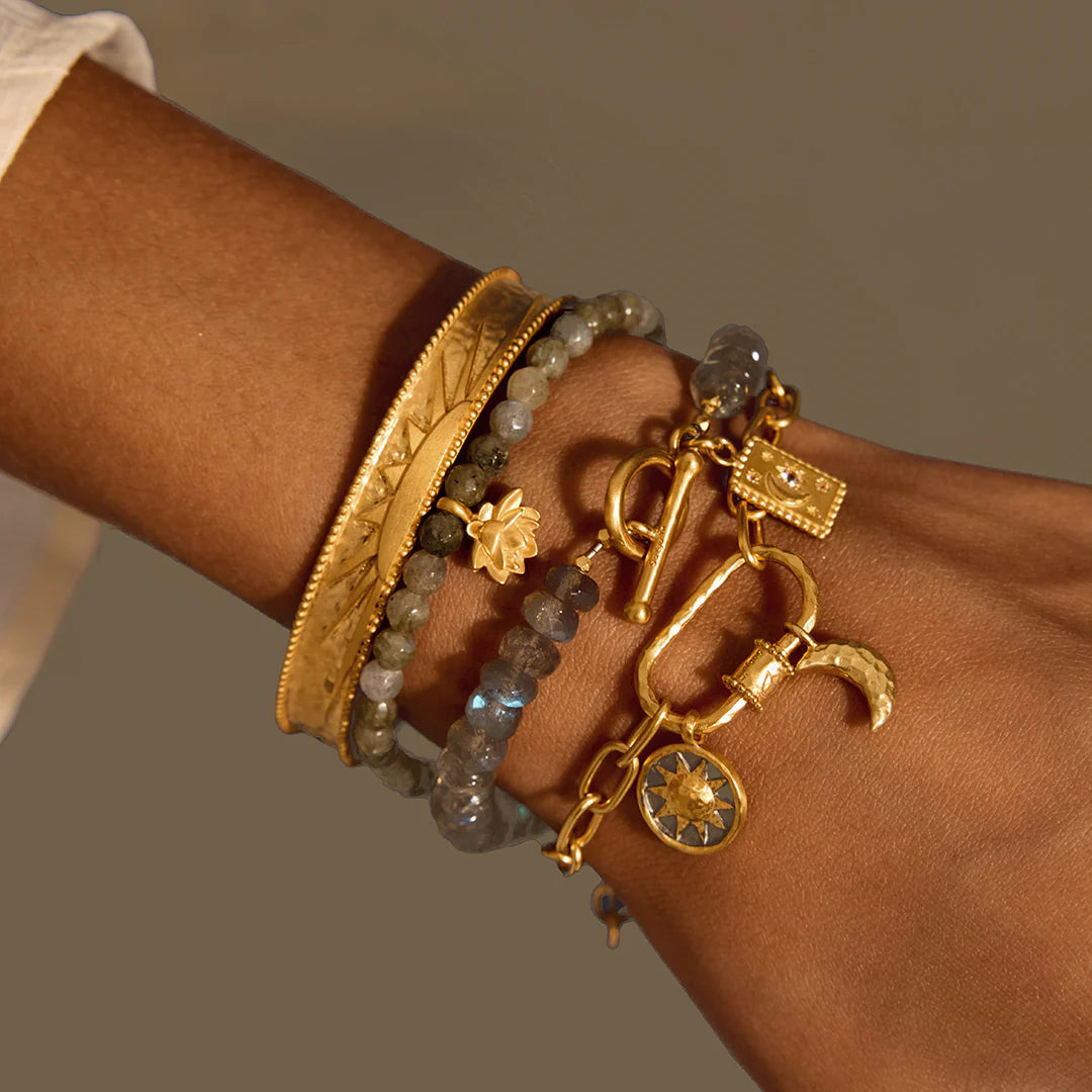 Satya Jewelry is created with simplicity, style and global consciousness. Semi-precious gemstones renowned for their ancient healing properties are combined with 18kt gold plate, sterling silver and sacred symbols to create jewelry that brings peace and hope to its wearers.