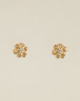 The Aleli floral studs represent a small blooming flower, with a luminous white stone at its heart.