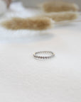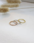 The Lucy Ring shines bright with bezel cubic zirconia stones all around to add some sparkle to any stacked look.
